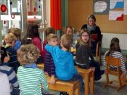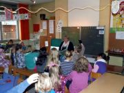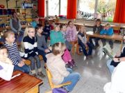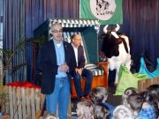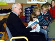 MdB Peter Beyer liest uns die Geschichte „Fatima und die Befreiung der Träume“ von Autor Rafik Schami vor. Im Anschluss lesen Großeltern, ehemalige Lehrerinnen der Grundschule Kuhstraße und Pfarrer Basse vor. Bei dieser Gelegenheit konnte Schulleiter Wolfgang Köhler den neuen Bus einweihen, der z.B. auch für die individuelle Förderung oder als Ort für eine Auszeit zur Verfügung steht.